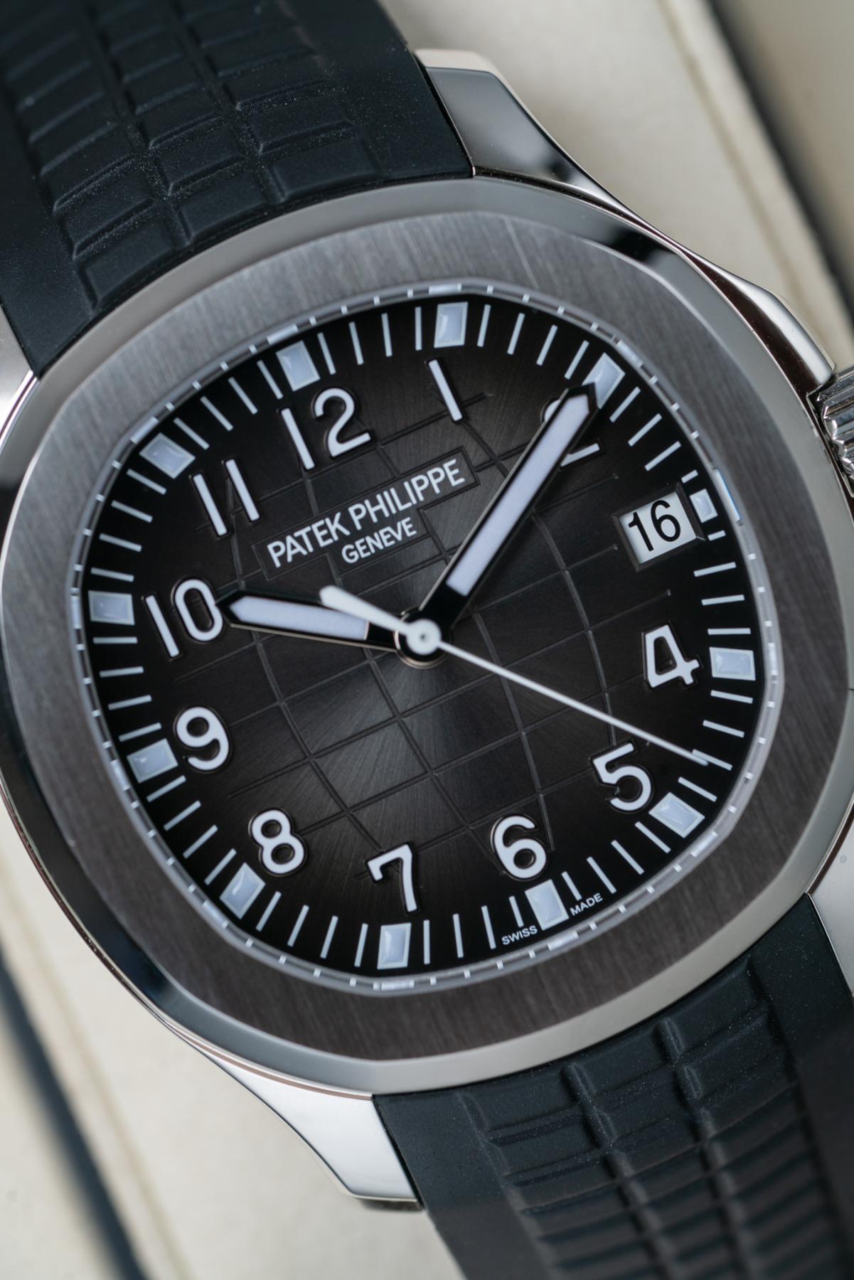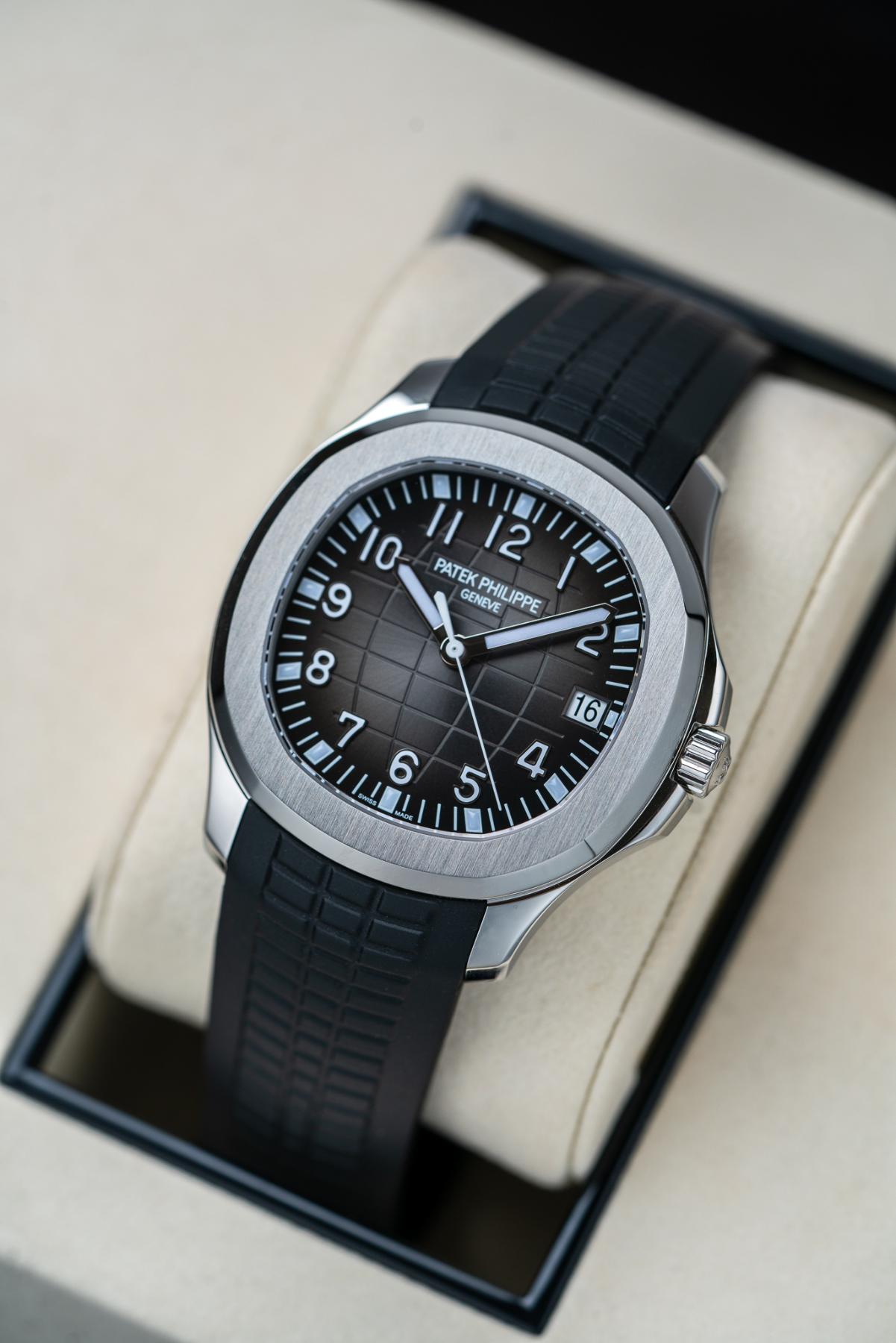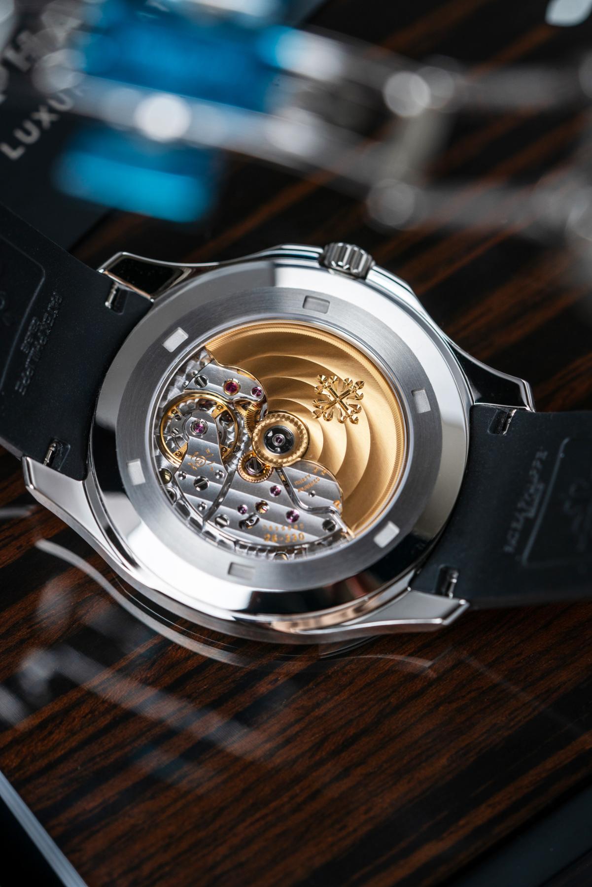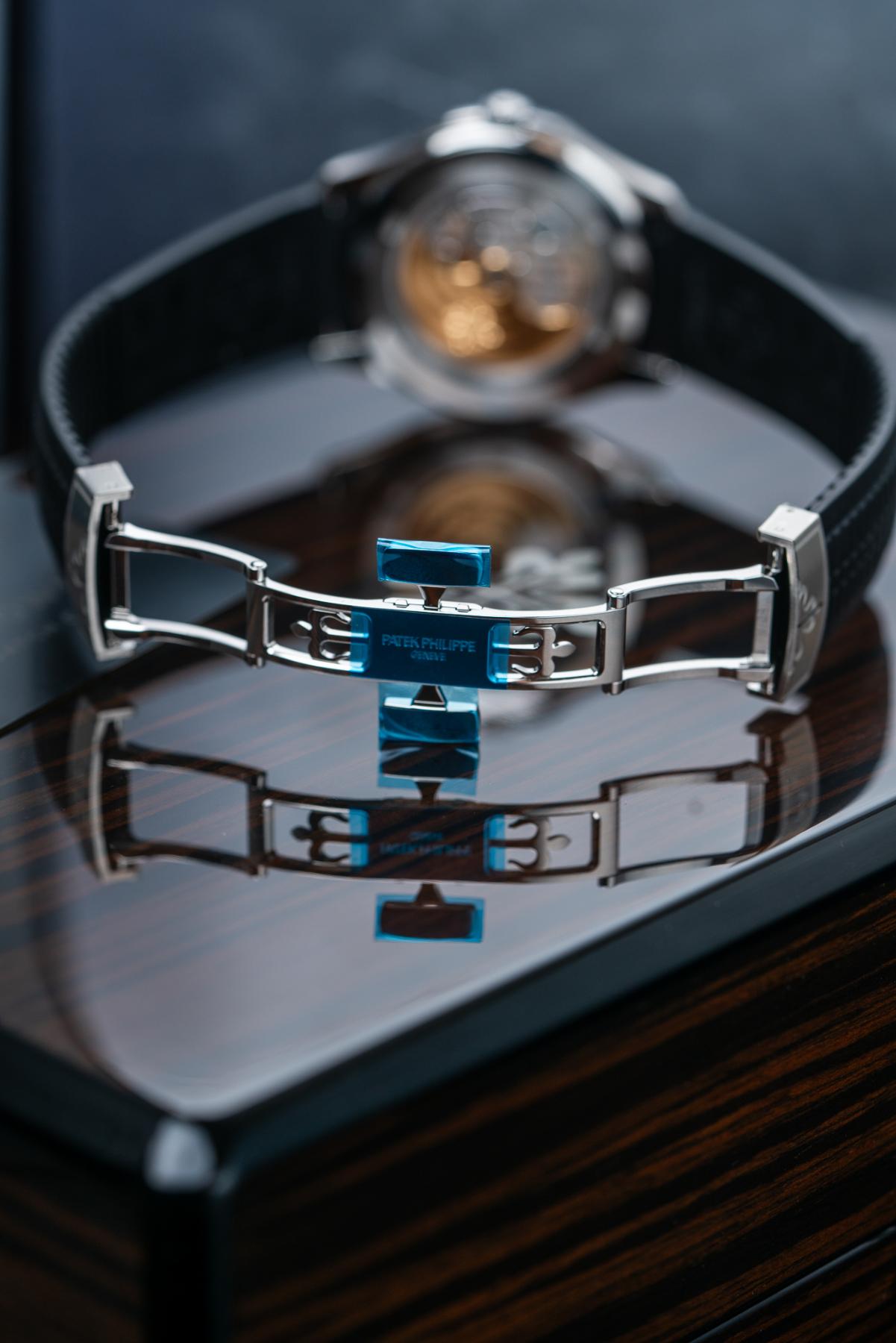 The 5167A-001 is a sporty, modern classic from Patek Philippe’s Aquanaut line. The watch has a 40.8 mm stainless steel case, around 8.1 mm thick, combining brushed and polished finishes. It features an embossed black dial with applied Arabic numerals coated in luminescent material, a date window at 3 o’clock, and sweep seconds. The strap is a black “Tropical” composite rubber strap engineered for durability, resistant to UV and water. Inside is the automatic Patek Philippe Caliber 26-330 S C (also called 324 S C), offering about 45 hours power reserve. The case back is sapphire crystal, allowing a full view of the movement. Water resistance is up to 120 meters, making it both functional and versatile.
