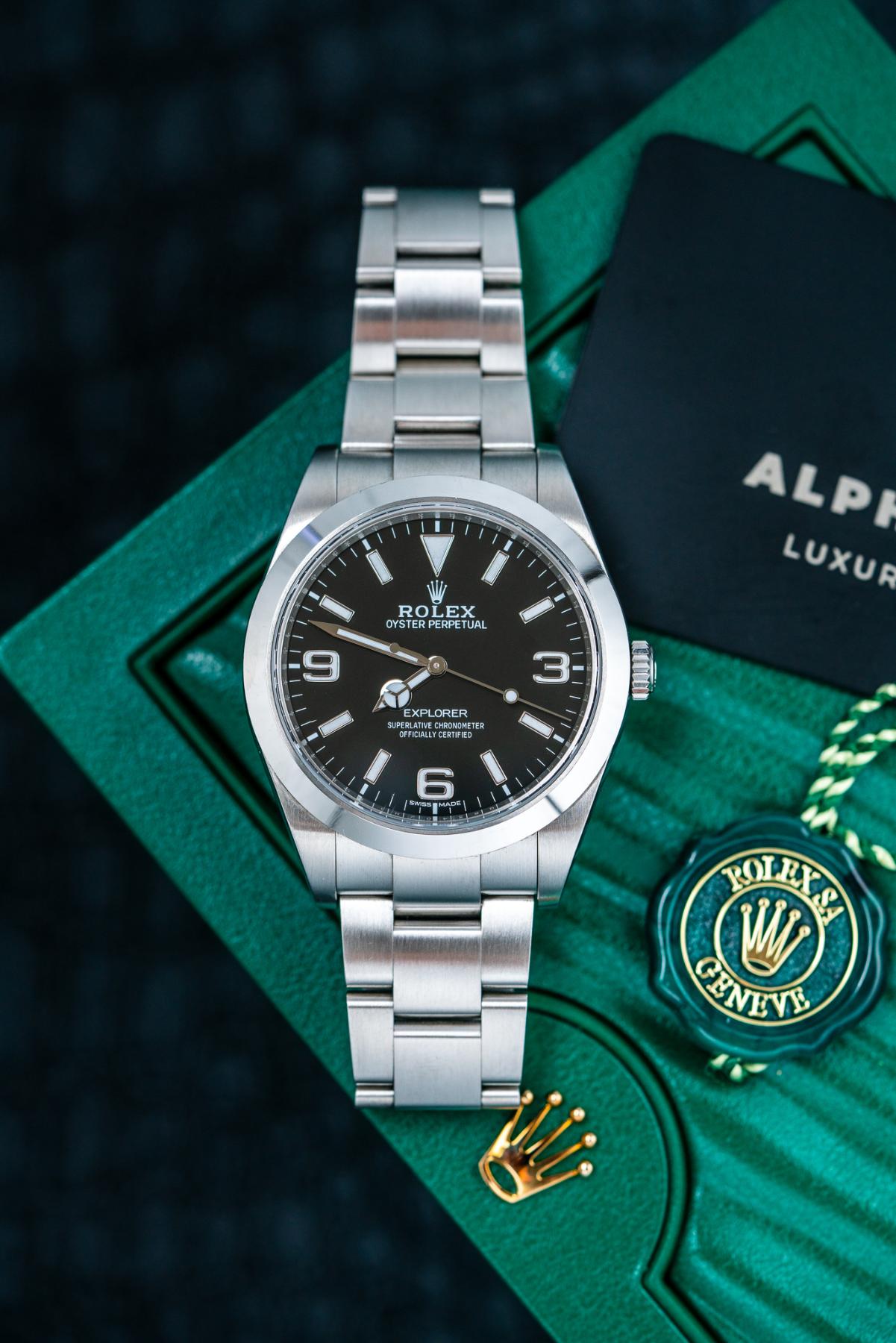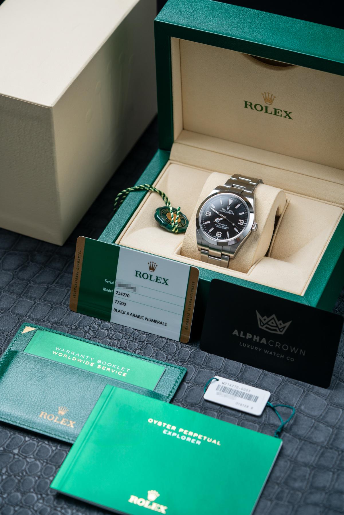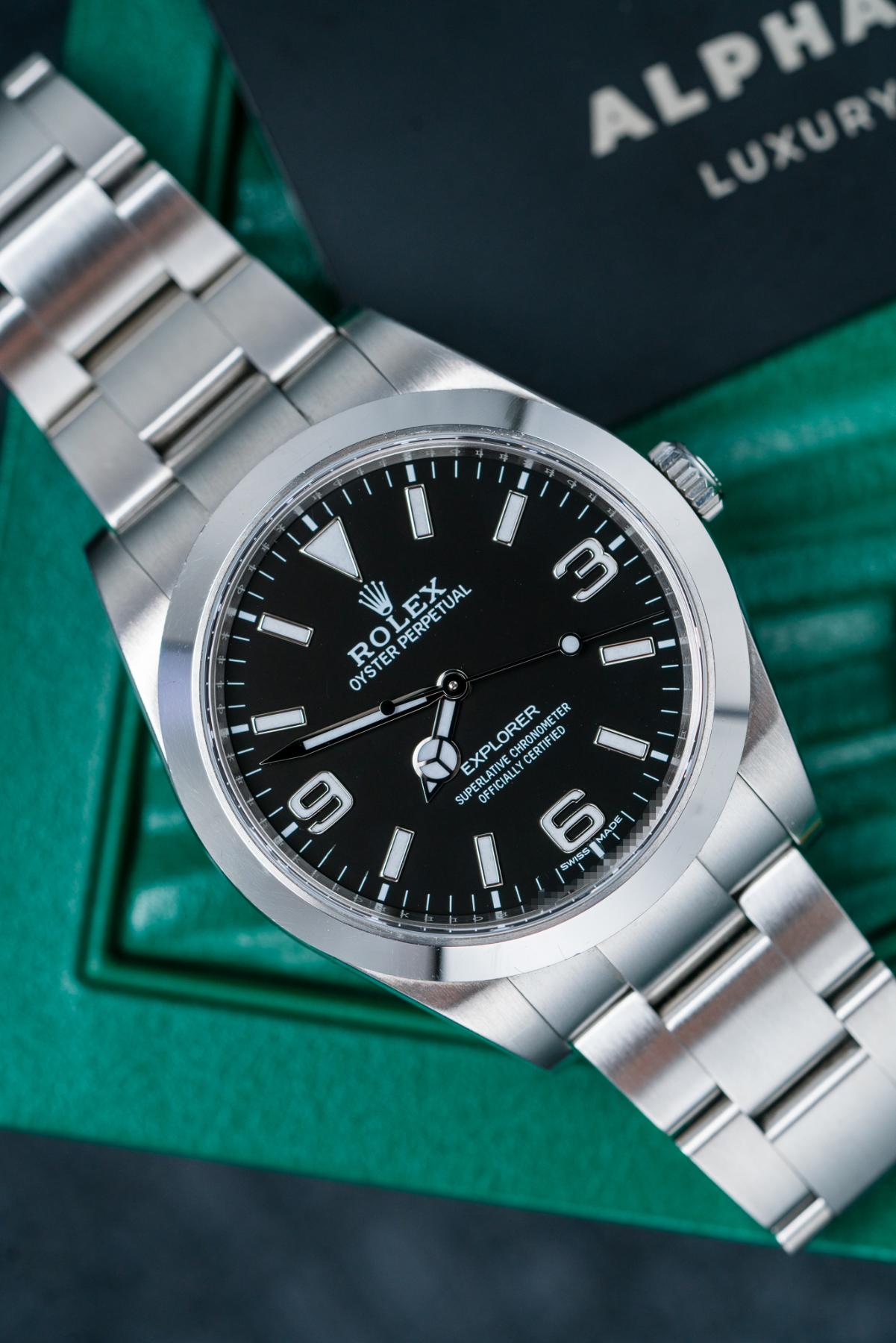 The Rolex Explorer I 214270 is a modern classic built for precision and endurance. Crafted from Oystersteel, it features a 39 mm case with a smooth bezel and a durable Oyster bracelet. The black dial showcases the signature 3-6-9 Arabic numerals and Chromalight luminous markers for superior visibility. Powered by the Caliber 3132, it delivers a 48-hour power reserve, Parachrom hairspring, and Paraflex shock absorbers for exceptional reliability. Water-resistant to 100 meters, the 214270 blends adventure-ready toughness with refined simplicity, making it a versatile Rolex for explorers and everyday wear alike.