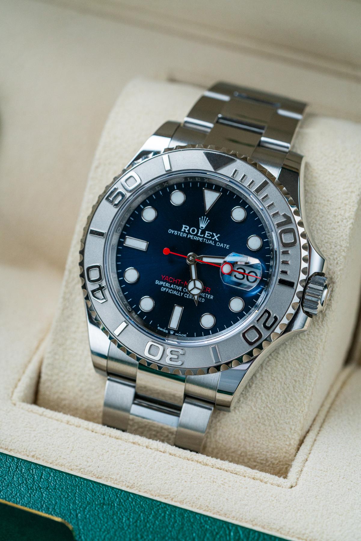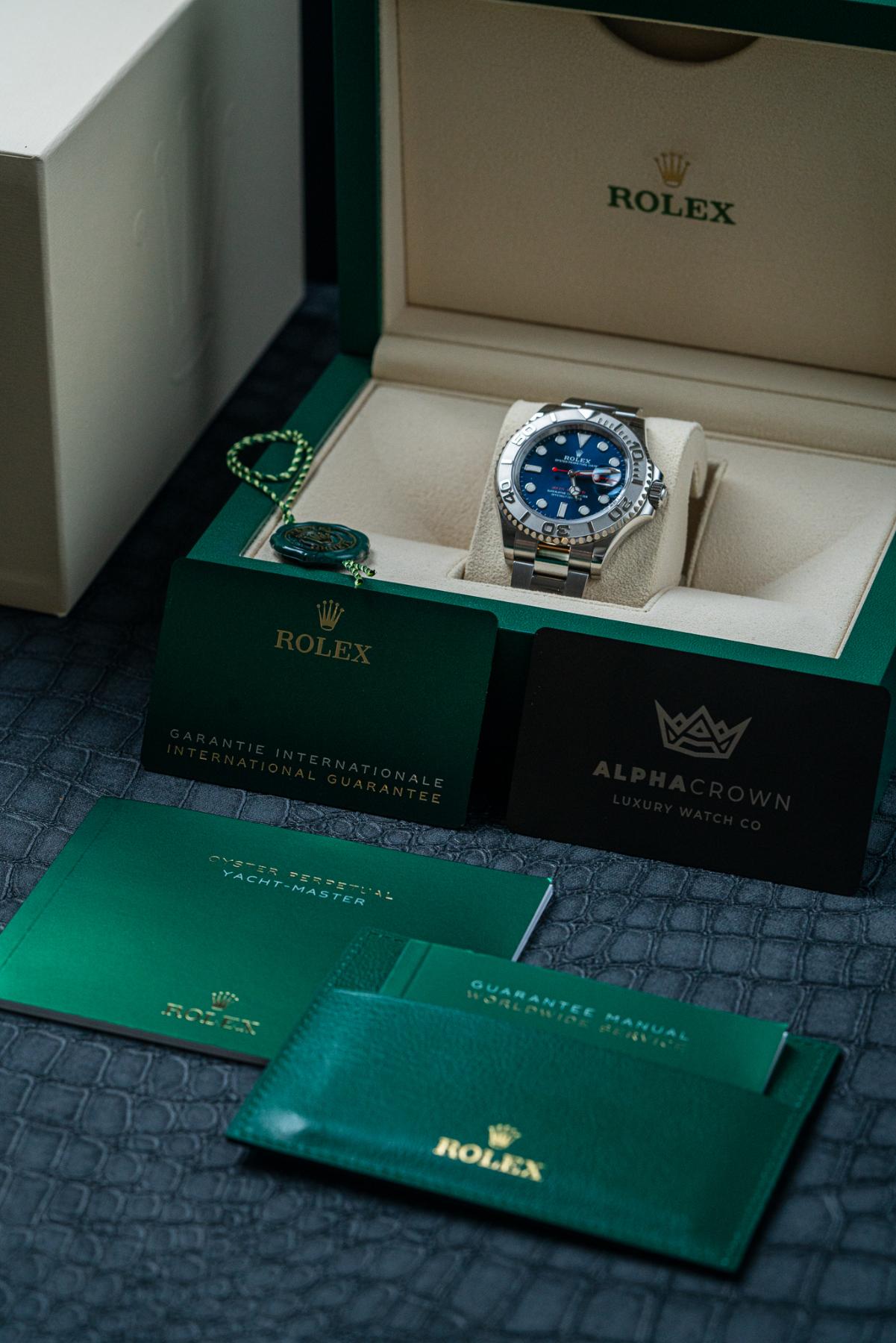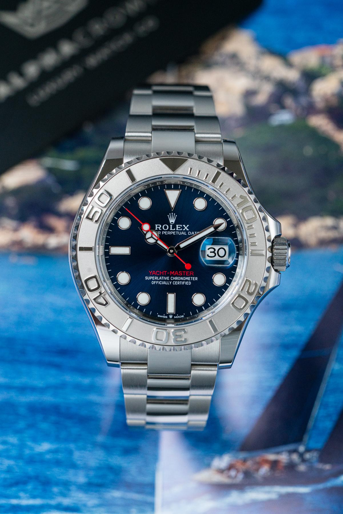 The Rolex Yacht-Master 40 Ref. 126622 with blue dial is a refined luxury sports watch crafted in Rolex’s signature Rolesium combination of Oystersteel and platinum. Its 40 mm case is paired with a bidirectional platinum bezel featuring raised polished numerals for a distinctive nautical look. The vibrant sunburst blue dial is accented with Chromalight luminous hour markers and a date window at 3 o’clock with Cyclops lens. Powered by the Rolex Caliber 3235, it delivers a 70-hour power reserve and Superlative Chronometer precision. Elegant yet sporty, the 126622 blue dial is a versatile Yacht-Master built for both land and sea.